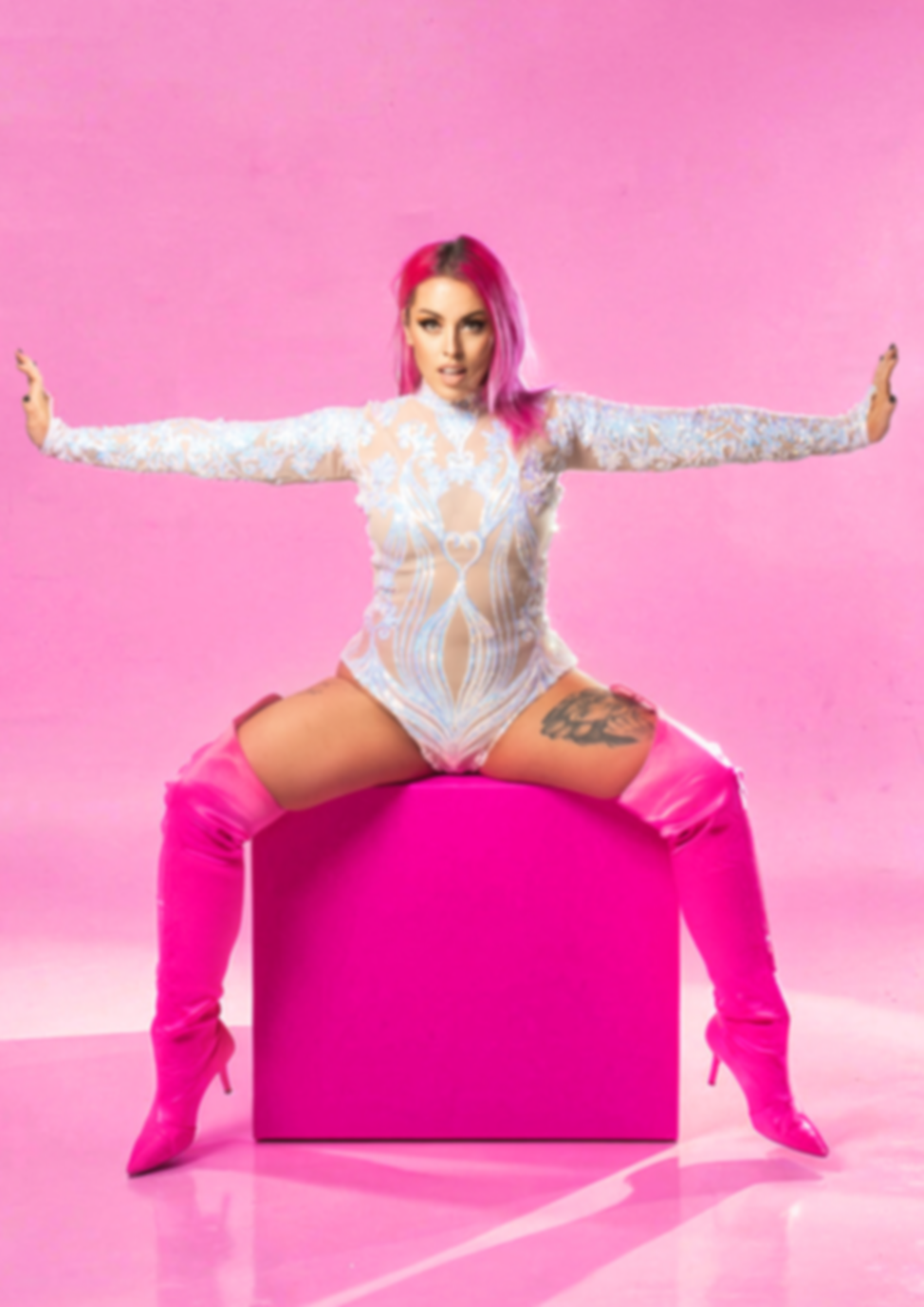 Her signature pink hair and unapologetic rock n roll style is what sets her apart from the rest. She believes that everyone deserves to feel like a rockstar, and she aims to accomplish just that through her music, her live show, and her open invitation to be yourself throughout everything she does.